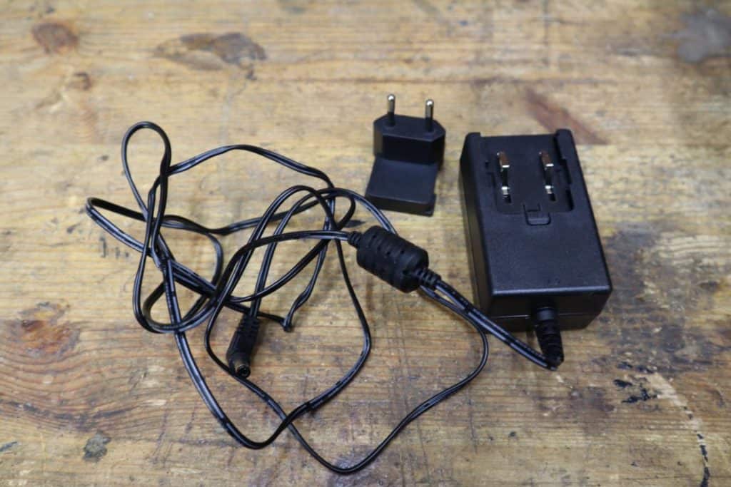 Das Radio wird mit einem klobigen Netzteil, auf dem noch ein EU-Adapter aufgesteckt wird, betrieben. Auch das dünne Kabel erweckt nicht gerade viel Vertrauen.