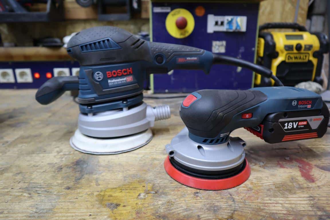 Dennoch hat der GEX 18V-125 auch Vorteile. Erstens ist er handlicher und zweitens kannst du ihn frei ohne Kabel benutzen. Deshalb würde ich diesen bei kleinen Flächen, Feinschliff oder Rundungen vorziehen.