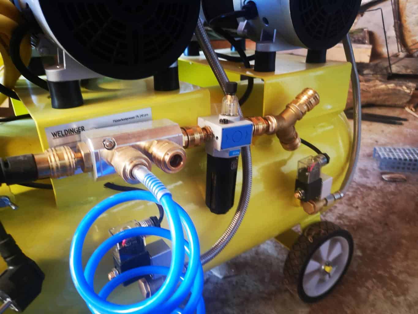 Aber auch wenn der Kompressor nur einen Anschluss hat, wie der Weldinger Fk 240 pro, lassen sich die Kompressoren leicht mit Teilen aus dem HUW24-Shop umbauen.